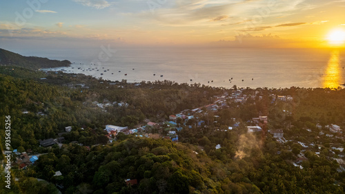 Aerial sunset view of Koh Tao Thailand aerial view Sairee beach