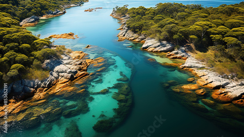 Aerial View Of The Rainforest And Winding River With Mountains Landscape Background