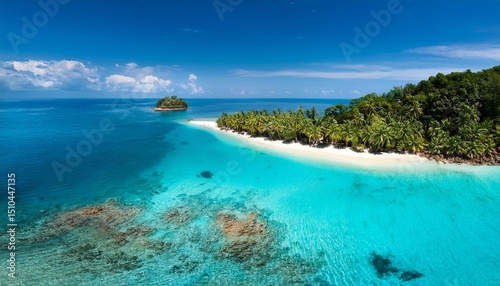aerial view of a tropical island with turquoise water