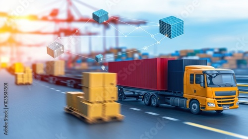 Aerial View of Busy Logistics Facility with Trucks Containers and Warehouse in Urban Setting