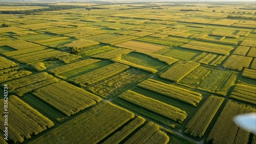 Aerial View of Green Agricultural Fields Forming Rectangular Patterns
