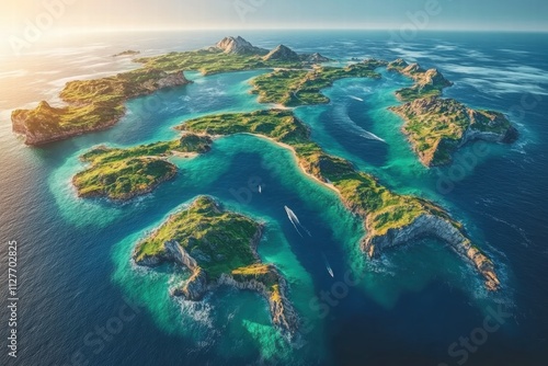 Aerial View of Lush Tropical Islands and Turquoise Ocean