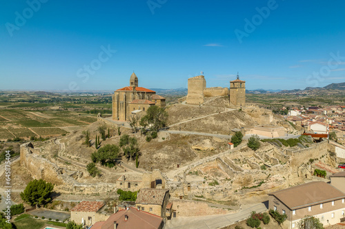Aerial view of san vicente de la sonsierra castle and town above the Ebro river in Spain