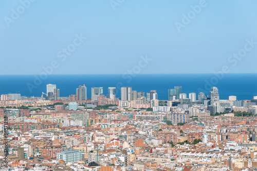 Aerial view of the Barcelona district of El Poblenou. The district, formerly it was an industrial area, is newly developed, now with many high-rise buildings, what gives the city a new face.
