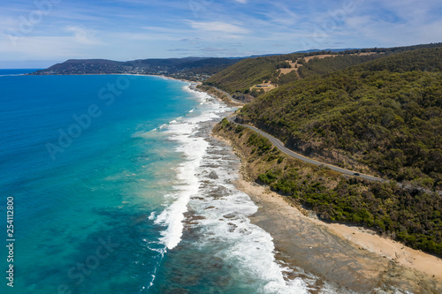 Aerial view of the great ocean road in Victoria Australia, one of the world's most spectacular ocean drives