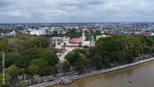 Aerial view of the largest mosque in Banjarmasin, South Kalimantan, Sabilal Muhtadin Mosque