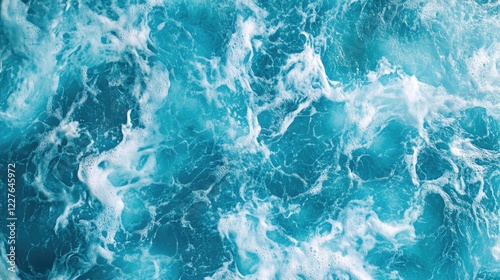 Aerial View of Turquoise Ocean Water with Gentle White Waves and Ripples on Calm Surface