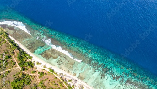 Aerial View of Vibrant Coral Reef and Clear Blue Ocean Water