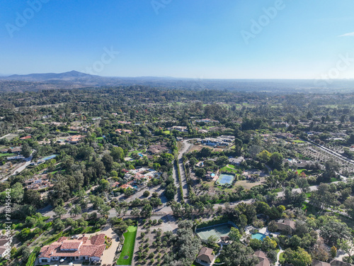 Aerial view over Rancho Santa Fe super wealthy town in San Diego, California, USA