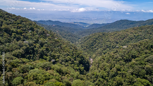 Aerial view to a valley in the Serra de mantiqueira (Mantiquiera mountains), Itatiaia , Rio de Janeiro, Brazil