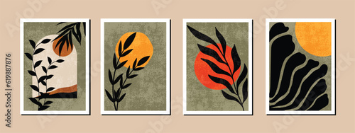 Aesthetic Minimalist Wall Art Design. Floral, Sun,Moon Nature.