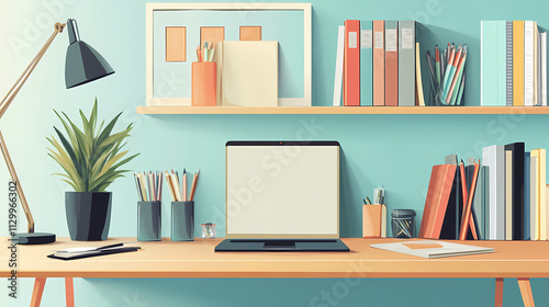 Affordable and stylish stationery display for organized workspace. Omnipresent. Illustration