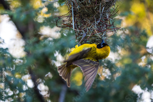 African Golden Weaver / Yellow weaver in a nest, Botswana