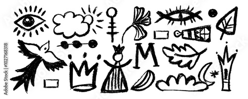 African silhouette print. Ethnic border Aztec and Mayan. Mexican shapes, sign and symbol. Mexico or Peru decorations. Inca texture. Vector tidy ornaments set.