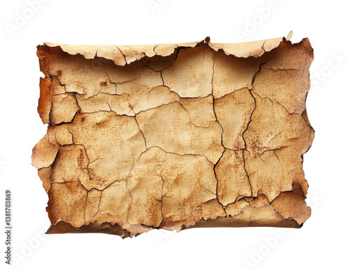 Aged cracked paper texture graphic design isolated on transparent background, png