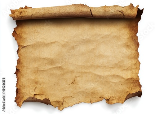 Aged parchment scroll, blank, on white background