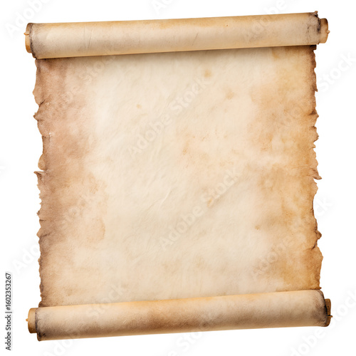 Aged Parchment Scroll Blank Template Background isolated on transparent background