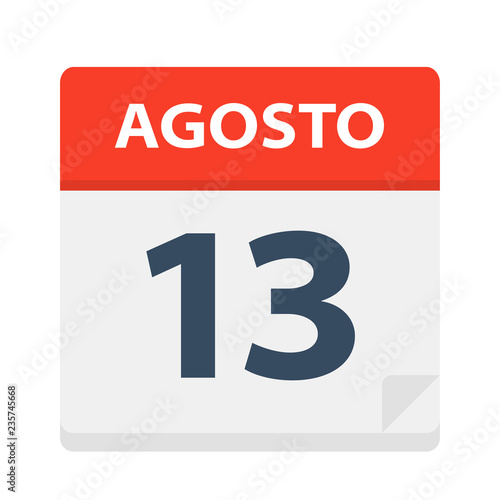 Agosto 13 - Calendar Icon - August 13. Vector illustration of Spanish Calendar Leaf