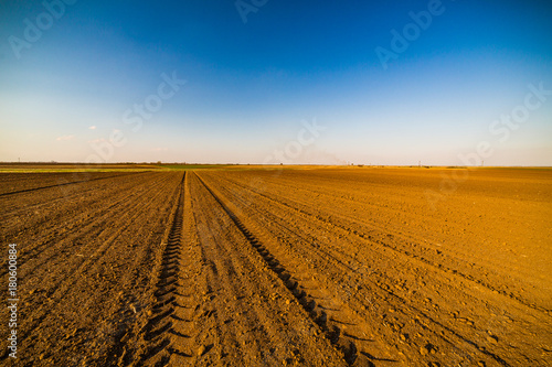 Agricultural landscape, arable crop field. Arable land is the land under temporary agricultural crops capable of being ploughed and used to grow crops.