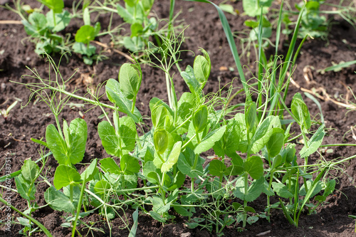 agriculture green pea sprout at farm. healthy eating concept.