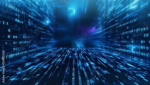 青い光が差し込むデジタルネットワークのバイナリコード背景デザイン.生成AI