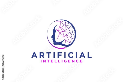 AI Artificial Intelligence logo design head face with circuit brain processor computer system