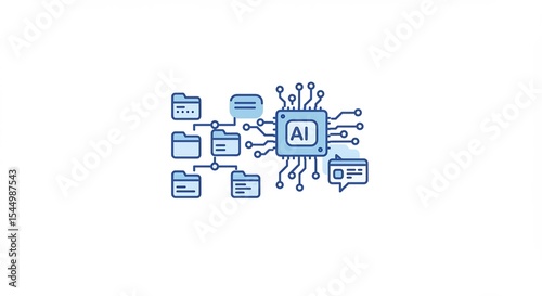 AI Data Processing Network: Blue Line Art Illustration
