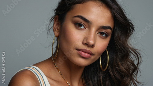 AI generated beautiful young woman portrait, mixed race ethnicity, perfect appearance