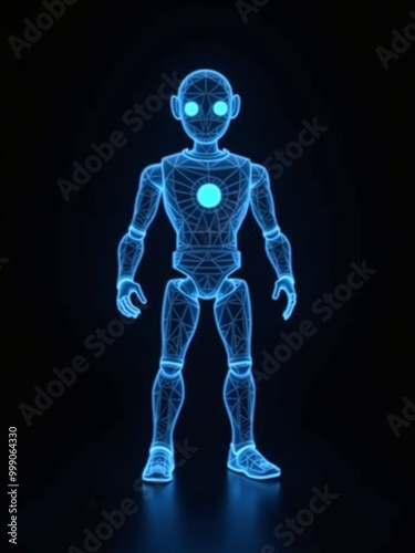ai humanoid robot body hologram on black background