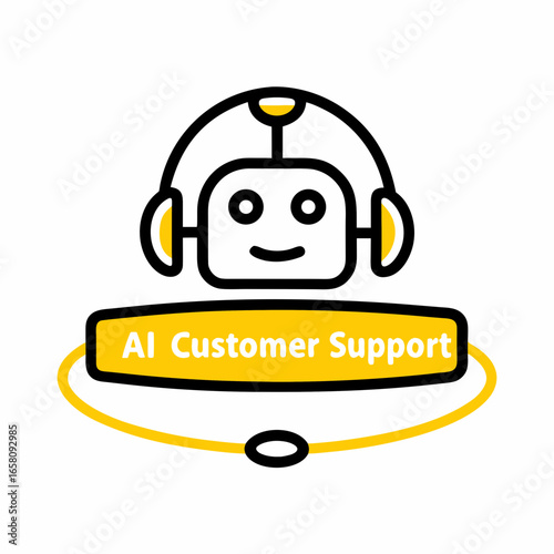 AI robot assistant icon with headset for customer support services