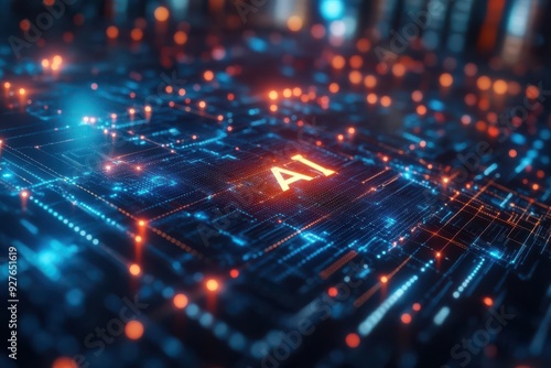 AI Technology Background with Digital Grid and Neon Lights