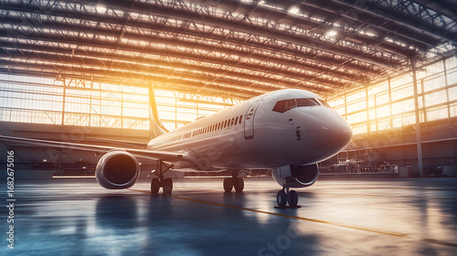 Airplane Inside a Hangar with Sunlight Streaming Through Windows