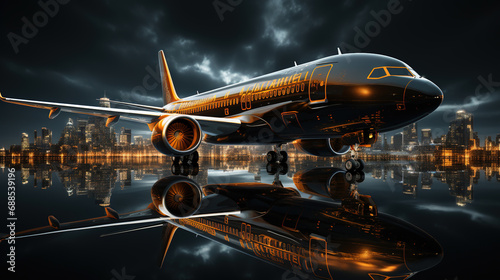 Airplane Parked At The Airport Runway Dark Theme Background Selective Focus