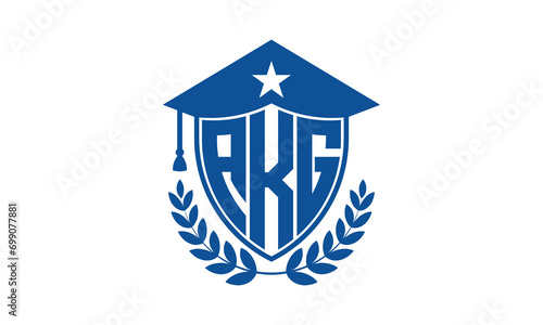 AKG three letter iconic academic logo design vector template. monogram, abstract, school, college, university, graduation cap symbol logo, shield, model, institute, educational, coaching canter, tech