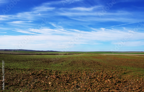 alentejo landscape, plowed field and blue sky
