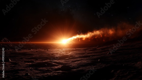 Alien Planet Sunrise: A fiery spectacle on a desolate extraterrestrial landscape.