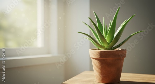 Aloe Vera Plant in Terracotta Pot - A vibrant aloe vera plant thrives in a terracotta pot, bathed in sunlight near a window. Perfect for home decor and wellness themes
