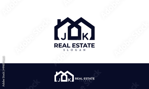 Alphabet JK or J and K Real Estate Monogram Vector Logo Design, Letter JK House Icon Template