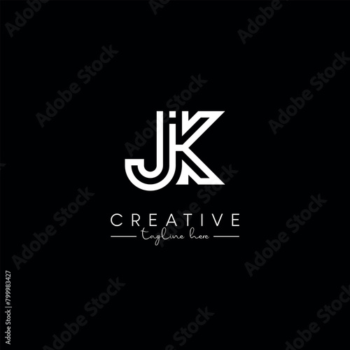 Alphabet Unique Letter JK KJ Initial Based Stylish Line Logo Design Vector.
