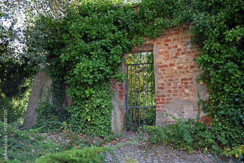 alte bewachsene Mauer mit Tor