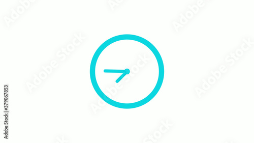 Amazing circle cyan color 12 hours clock icon on white background,circle clock icon without trick