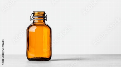 Amber Glass Bottle with Swing Top Closure on Gray Surface