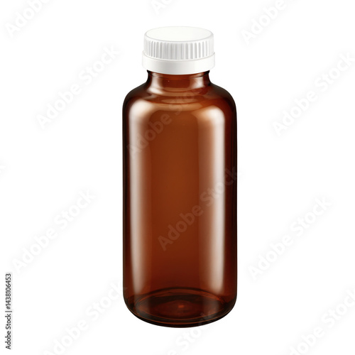 Amber glass bottle with white screw cap, illuminated on a neutral background, emphasizing its shape and clarity