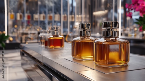 Amber Glass Perfume Bottles on Sleek Modern Display
