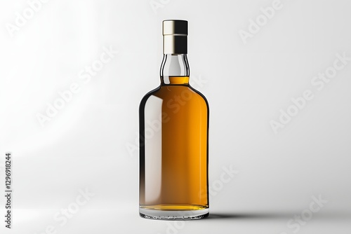 Amber Liquor Bottle Gold Cap Studio Shot Glass Container Beverage Alcohol Mockup Product Photography