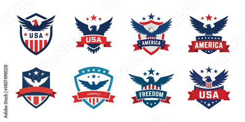 American eagle shield set, USA banner vector illustration collection for 4th of July