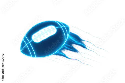 American football glowing blue neon flame transparent background
