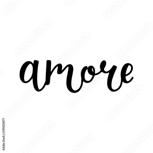 Amore word hand drawn lettering. Brush bounce modern calligraphy vector illustration.