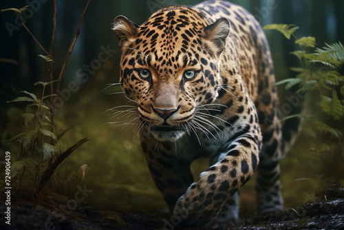 Amur leopard in the forest. Wildlife scene. Hyper realistic illustration