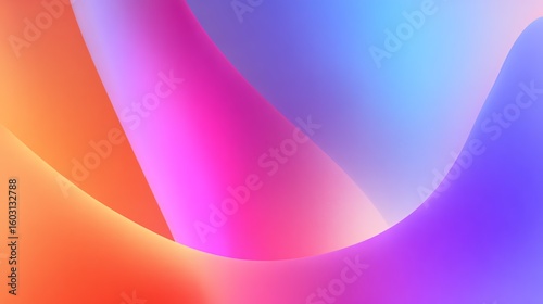 An abstract composition features flowing, overlapping shapes in vibrant hues, creating a sense of dynamic movement and serene harmony through color blending.